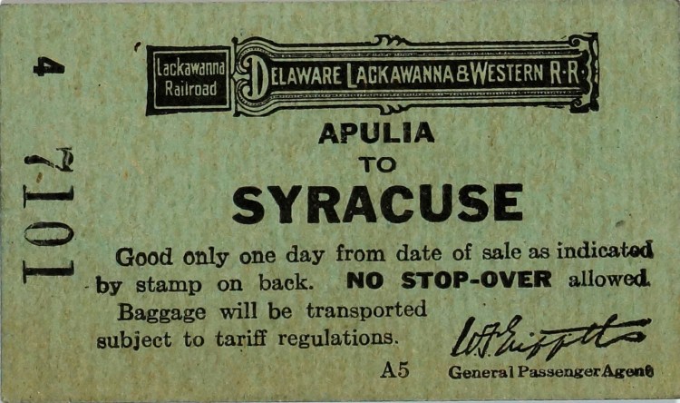 Cover Archive Blaney girls wadding in Butternut Creek Stat Barn, painting by David “RC” Oster, (315) 525-5838 Berry Road, winter of 1944 Motorcycle accident Apulia to Syracuse train ticket Summit Station, 1874 Apulia, 1874 Village of Fabius