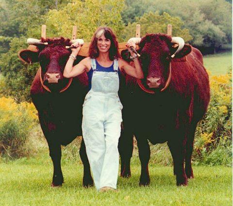 I walked two different teams of oxen in several Fabius parades. That’s Woody and Riley, my Durham team. It was our first parade, and the only parade I did on crutches.